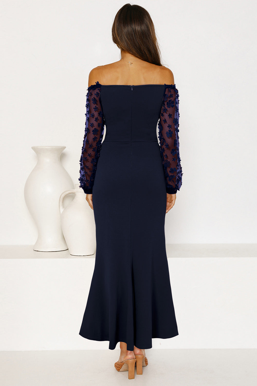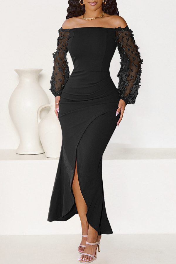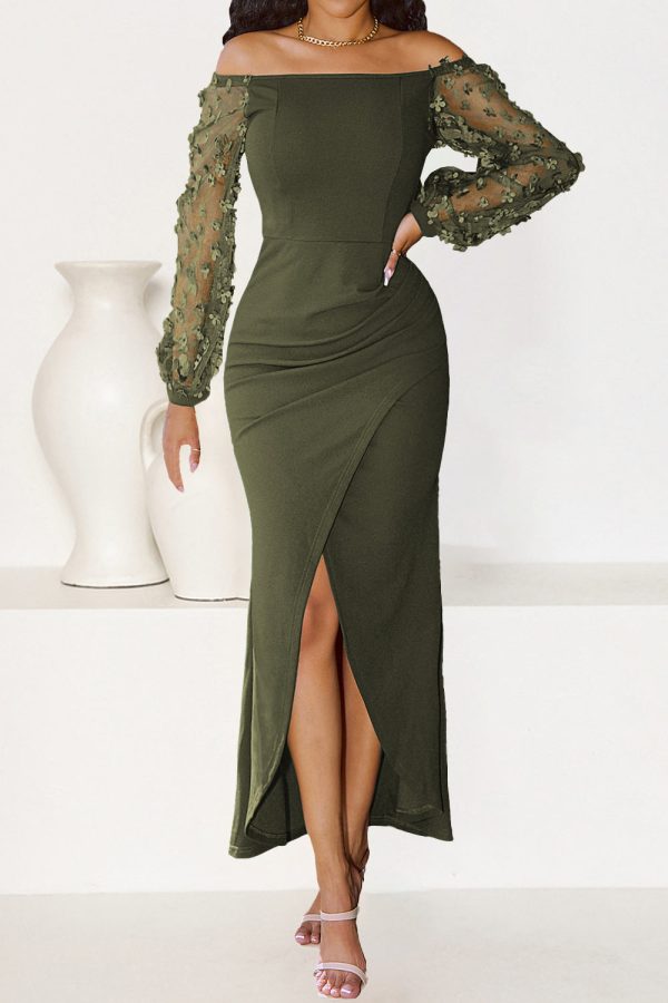 / Sheer Mesh Bishop Cocktail Party Dress