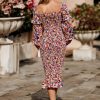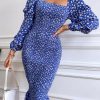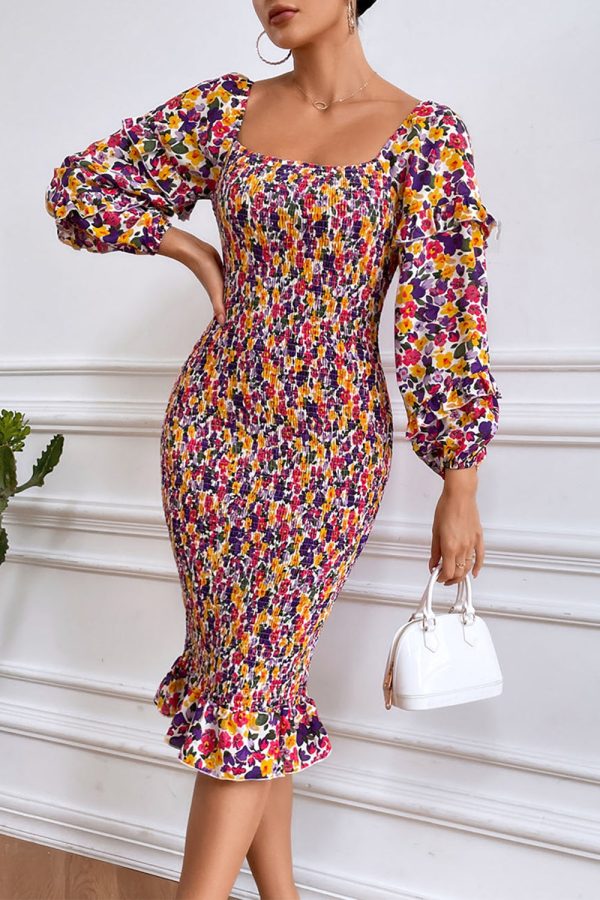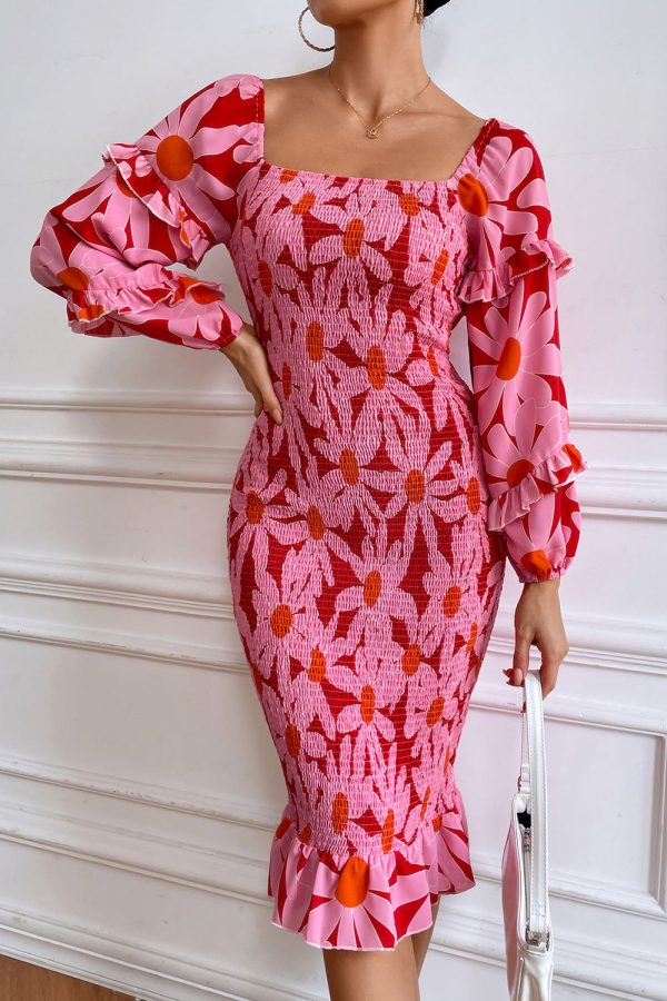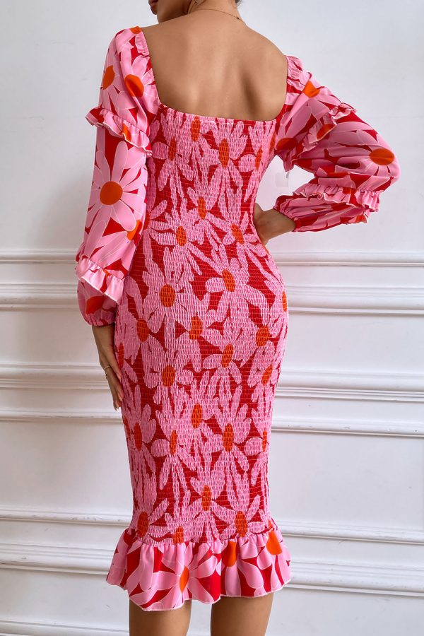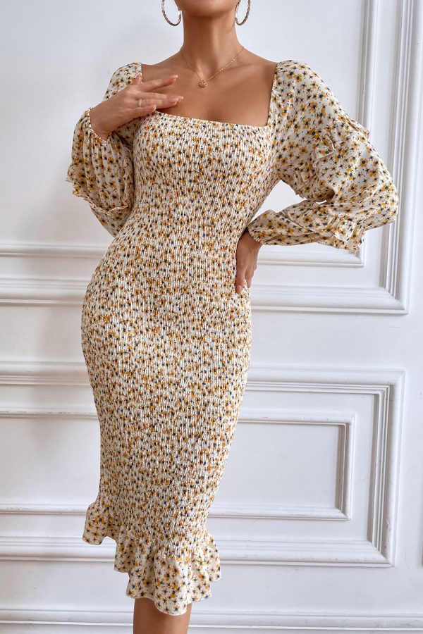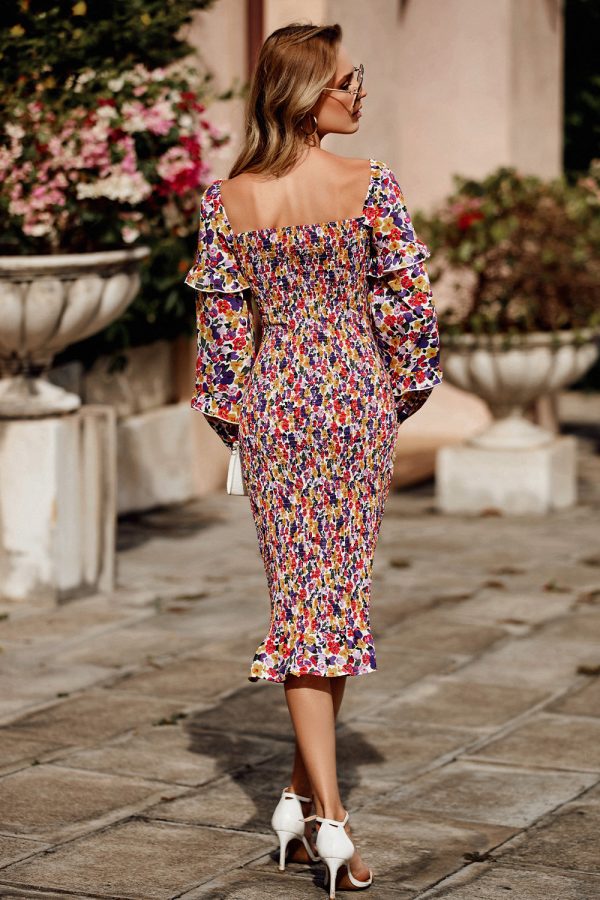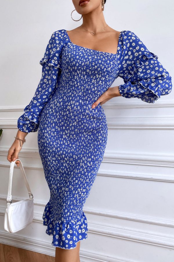 / Women Ruffle Mermaid Square Neck Smocked Dress