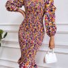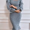 Women Ruffle Mermaid Square Neck Smocked Dress quantity