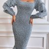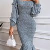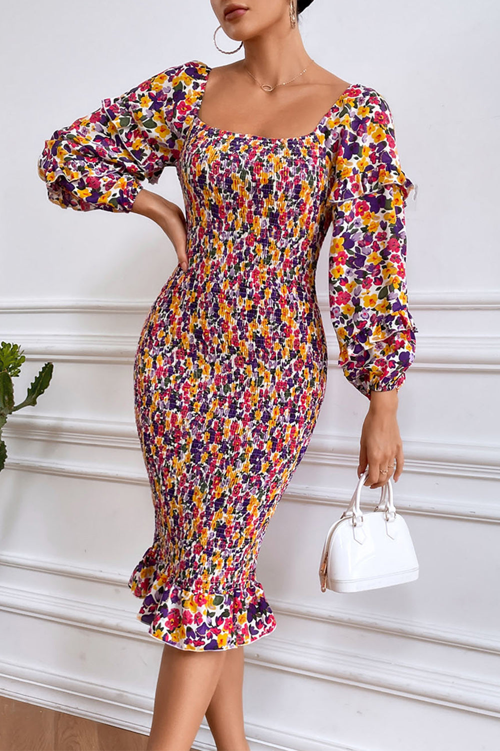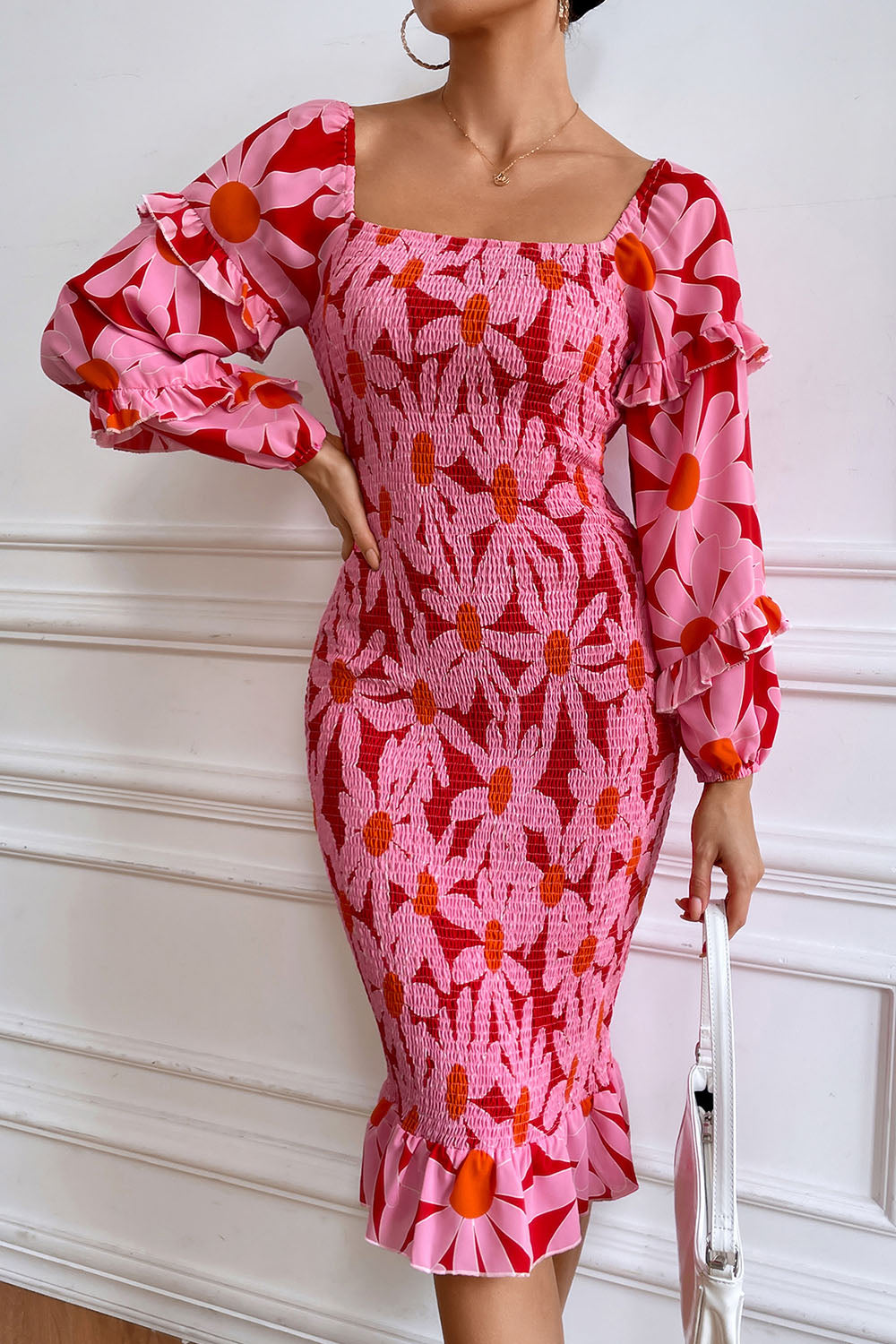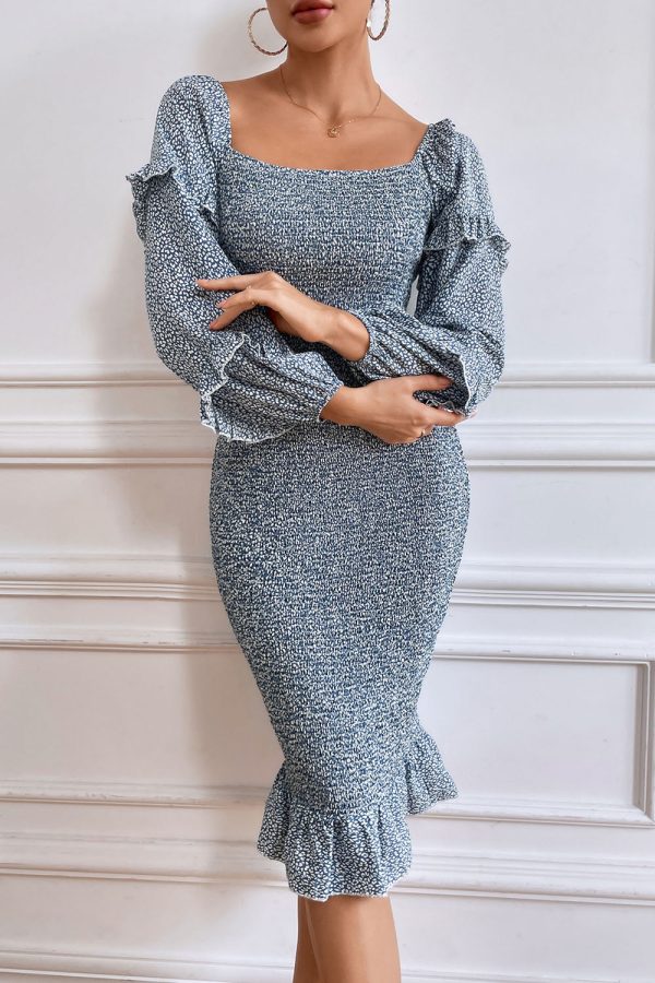 Women Ruffle Mermaid Square Neck Smocked Dress